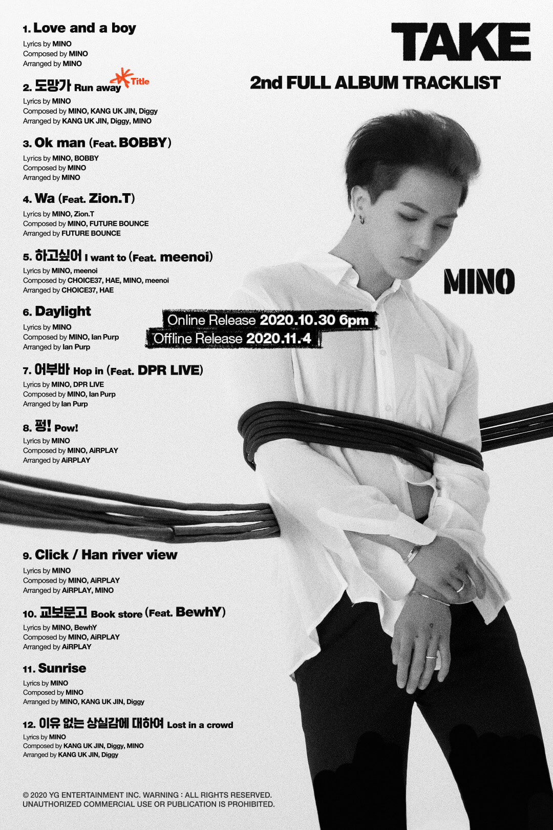 MINO – 2nd FULL ALBUM ‘TAKE’ TRACKLIST POSTER